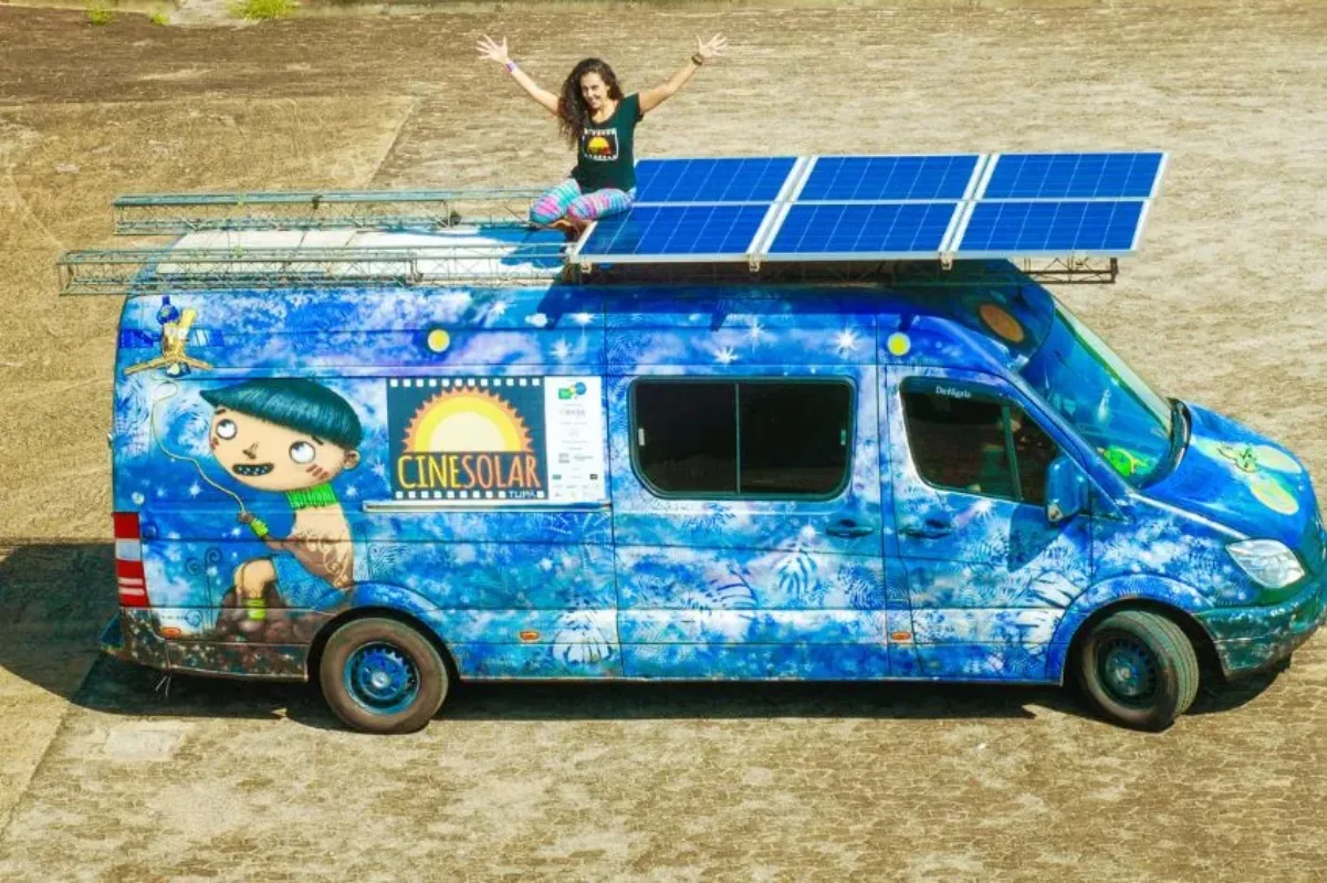 O CineSolar utiliza um furgão adaptado com placas fotovoltaicas no teto, que funciona como uma estação móvel de ciências, arte e cultura de paz. O veículo carrega todo o cinema, incluindo cadeiras, banquetas, equipamentos de som e projeção, além da própria tela. O espaço ainda conta com luzes coloridas, decoração feita com material reciclado e objetos interativos, como laser e bola de plasma, que ensinam, de forma lúdica, como a luz solar se transforma em energia elétrica.
